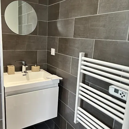 Von einer Terrasse aus kann man einen Ausblick auf den Garten genießen. Die 2-Zimmer- Gite "Au Vert", Maison De Vacances A Treillieres, Proche De Nantes verfügt über ein Badezimmer mit einer begehbaren Dusche und einer getrennten Toilette. Ein Haartrockner und Badelaken gehören ebenfalls zur Ausstattung des Badezimmers.